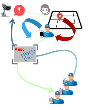 保安員(yuán)可(kě)通(tōng)過信息上•♣×(shàng)報(bào)功能(néng),直 ↔σ接上(shàng)報(bào)關鍵信息給自(zì)己的(de)直屬₽©≈∞組織調度員(yuán)。